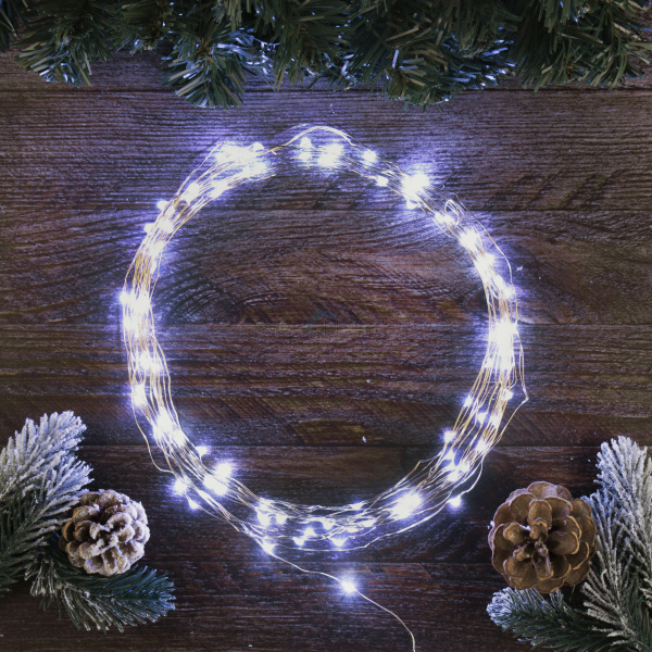 Гирлянда светодиодная нить Роса 100л 10м на батарейках постоянное свечение ЛЬДИНКА 213169 холодный белый