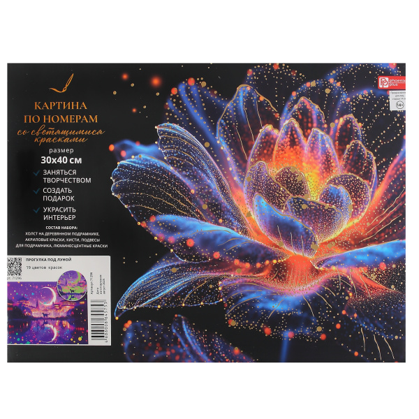 Картина по номерам 30*40 Феникс Прогулка под луной со святящ красками холст на подрамнике 71296