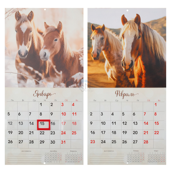 Товары для школы и офиса Календарь перекидной настен 2026г 23*23 на скобе с бегун Символ года Квадра 9779