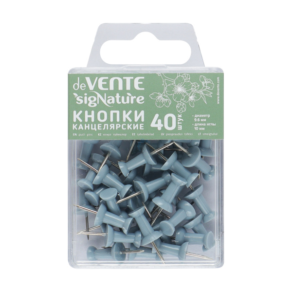 Кнопки силовые 40шт 9,6мм deVENTE sigNATURE 4132508 цветные сумеречно синие с иглой серебристого цвета пластиковая коробка