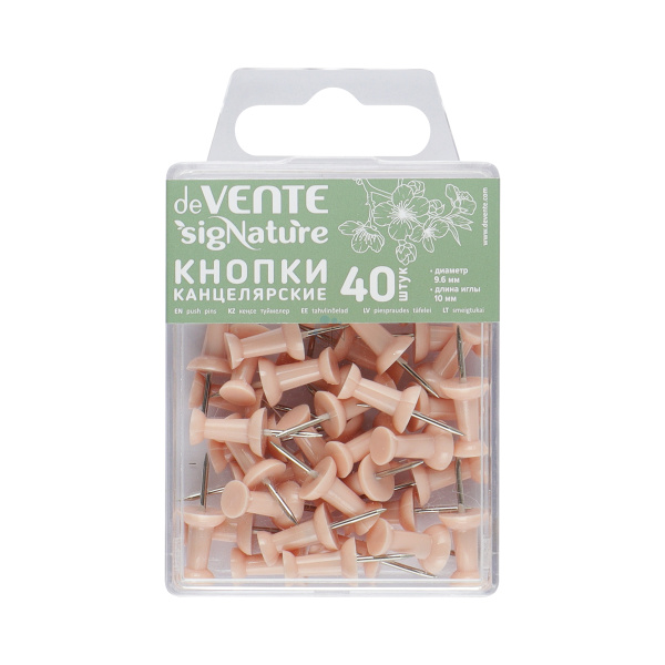 Кнопки силовые 40шт 9,6мм deVENTE sigNATURE 4132509 цветные пудрово-розовые с иглой серебристого цвета пластиковая коробка
